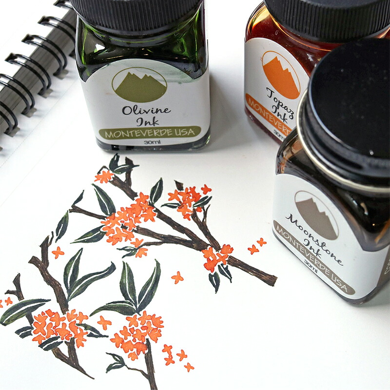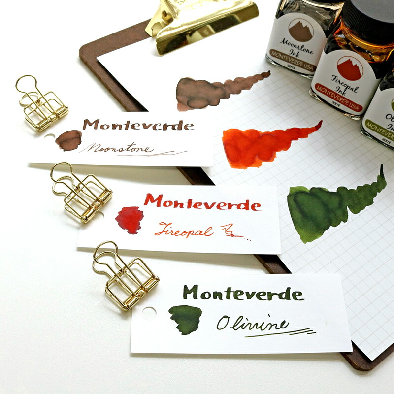 こちらは、アメリカで誕生した筆記具ブランド「MONTEVERDE(モンテベルデ)」のミニボトルインクです。宝石をイメージしたシリーズで、透明感のある美しい色合いがとっても魅力的。