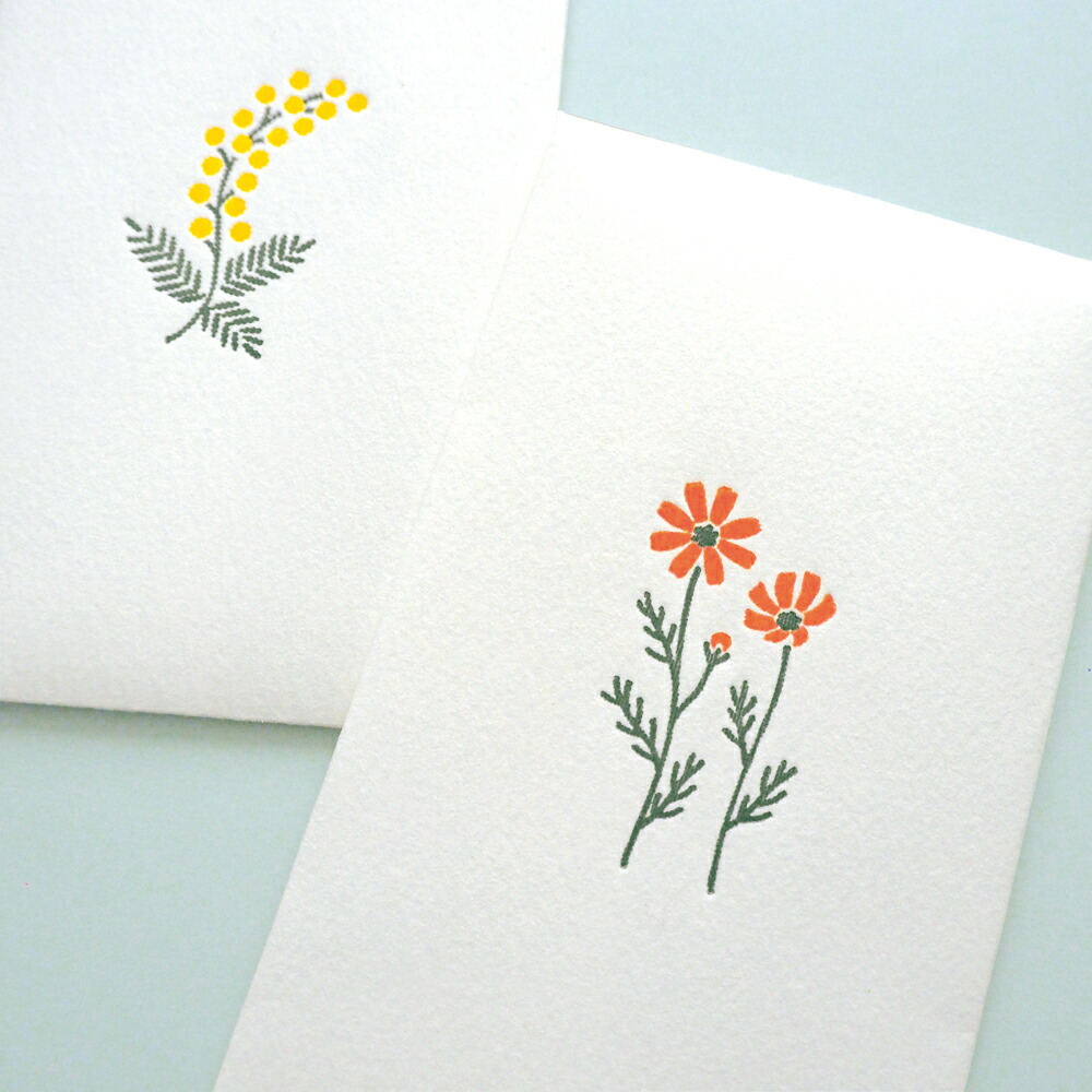 絵柄の種類は全部で12種類あり、ツバキやアジサイ、マリーゴールドなど1~12月の季節の花が、味わいのある活版印刷でデザインされています。