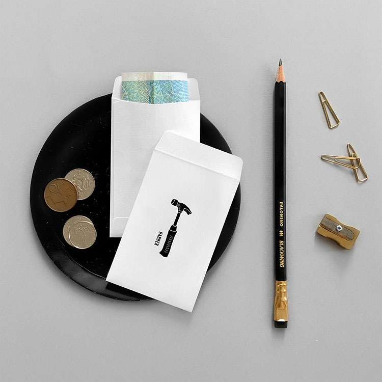 つづいてご紹介するのは「KNOOPWORKS(クノープワークス)」の「TOOL 活版ポチ袋」。ハンマーとCクランプという、ポチ袋にはちょっと珍しい工具がデザインされたアイテムです。建築関係の方やDIY好きな方なら、なおさらときめくデザインではないでしょうか。