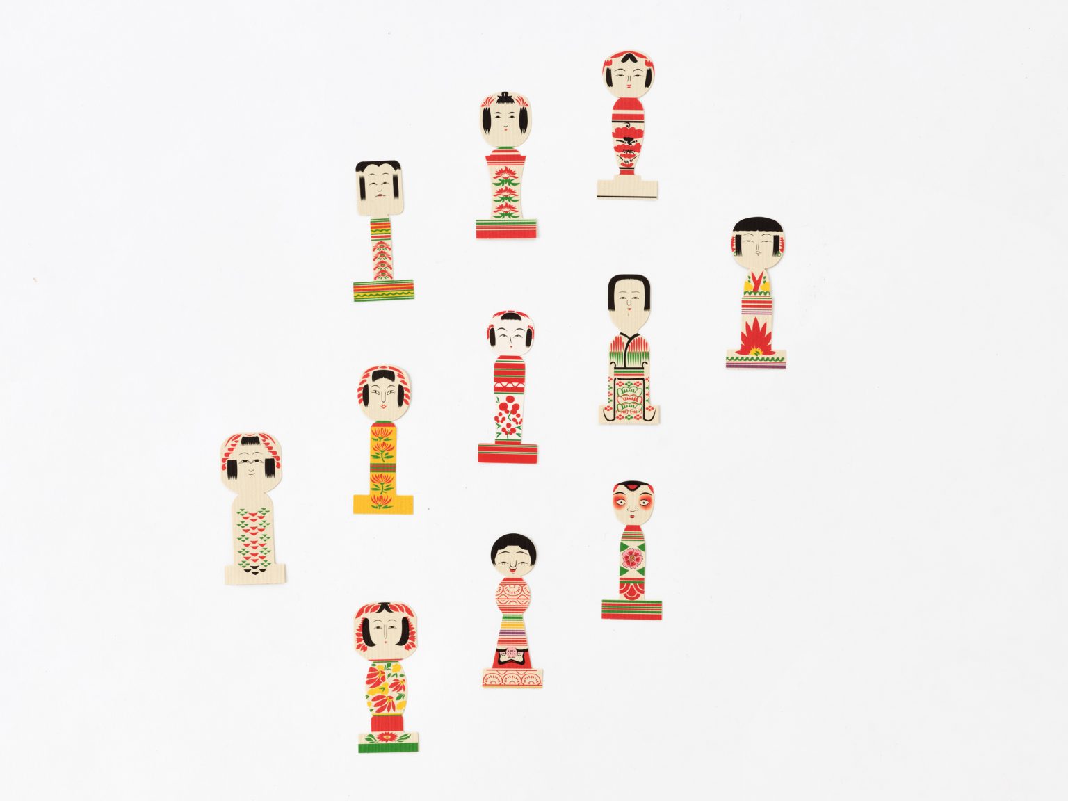 最初にご紹介するのは、「COCHAE」の「元祖こけしおり」。ユニークで個性あふれるこけしの表情や、こけしがまとっている美しい衣装のデザインに思わず目が釘付けになります。伝統工芸品であるこけしをしおりとして使用するとは、おもしろいアイデアですよね。