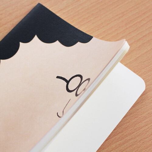 実は、髪の毛は製本テープでできているんだそう。なんとも遊び心万歳のノートですね。中の紙には岐阜県の美濃和紙を使っているため、書き心地の良い機能的なノートになっていますよ。