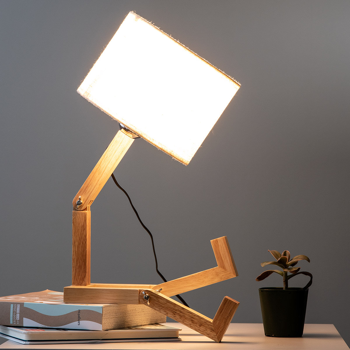 最初にご紹介するのは、まるで人のような形をした「ウッドマンランプ」。オレンジ色のやさしい光が魅力的で、机や本に腰掛けている様子がなんともかわいらしいデスクランプです。