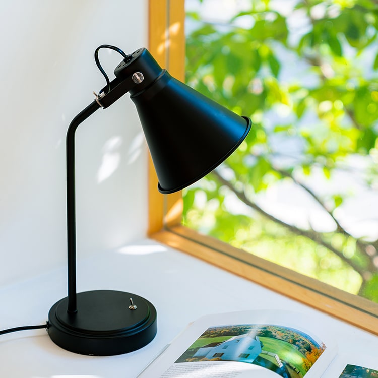 作業デスクの上に置いても邪魔になりにくいコンパクトなボディでありながら、明るさは十分。シェード部分が自由に角度調整できるため、好きな位置で手元を明るく照らせます。