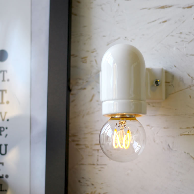 電球はE26であればどんなものでも使えますが、モダンな雰囲気を演出できる「MODERN LED bulb」がおすすめです。しかしデスクライトとしては光源が弱めなので、少し低めに設置するとよいでしょう。使うほどに愛着の湧く壁付けのデスクライトです。