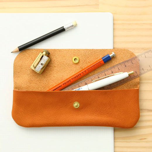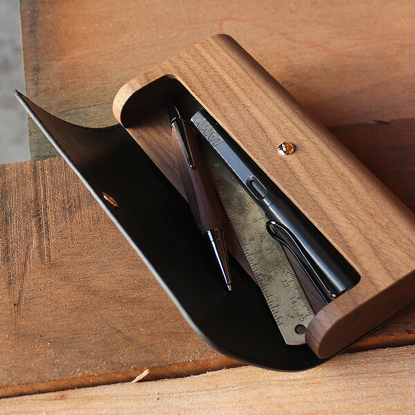 こちらの「Flap Pen Case」は、レザーと木材という2つの人気素材を組み合わせたペンケース。革素材のカバー部分は大きく開くため、大きめの文具もスムーズに取り出せますよ。