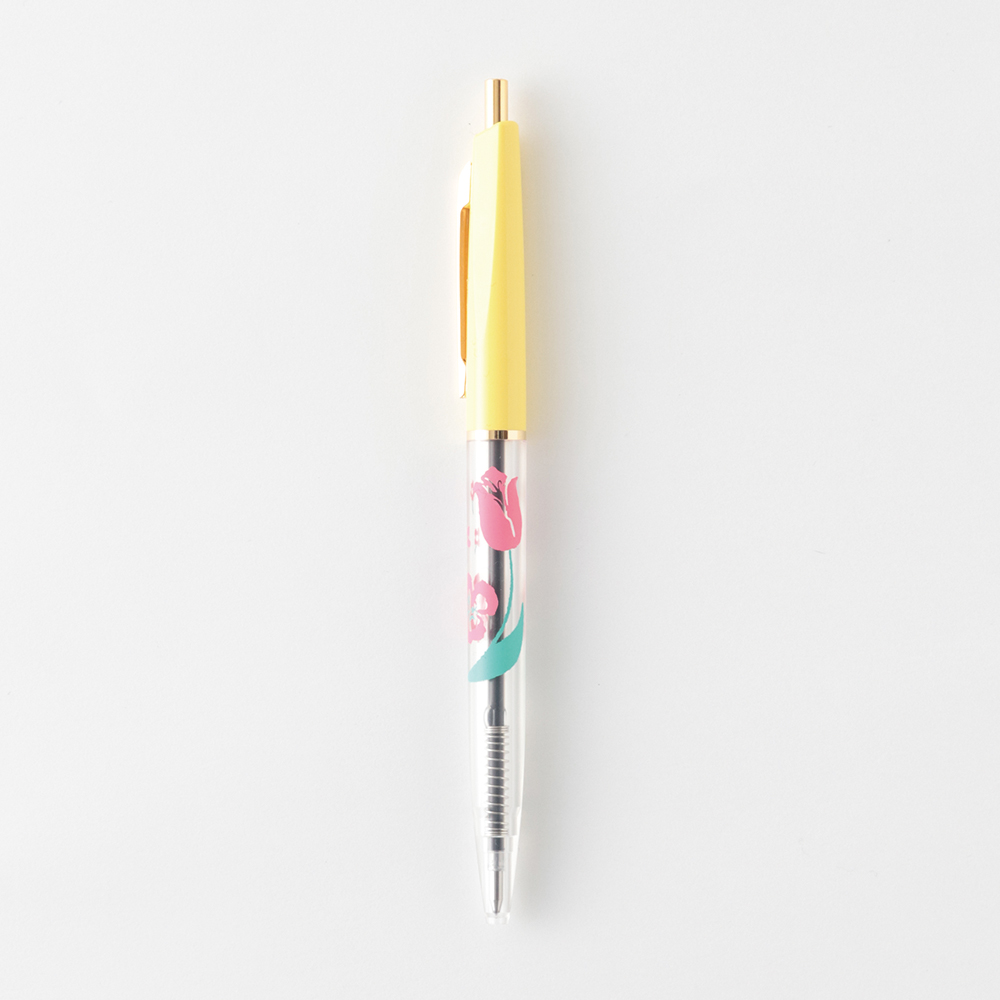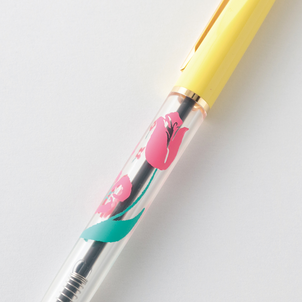 最後にご紹介するのは、「グリーンフラッシュ」が手掛けるトウメイブングシリーズのボールペン。チューリップのレトロなデザインとポップなカラーリングに心ときめくアイテムです。