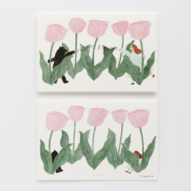 イラストレーターユニット、ネクタイさんのイラストが入ったバースデーカード「チューリップ」は、大切な方への誕生日に贈りたいとっておきのカードです。