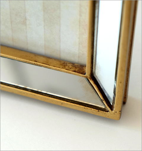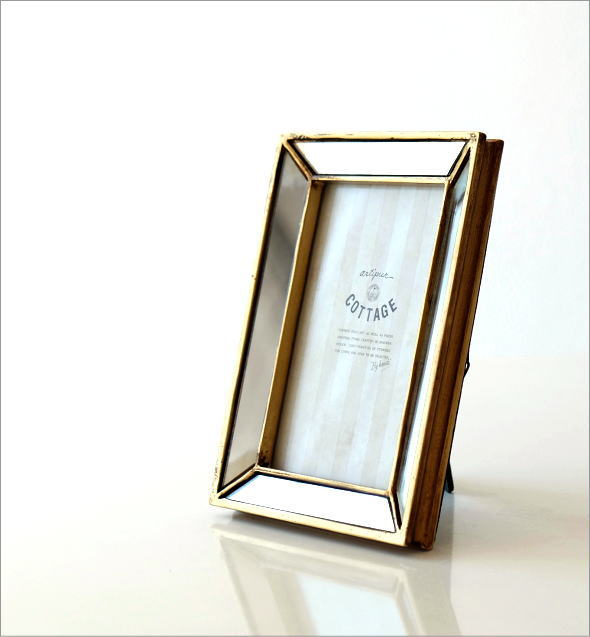こちらは、卓上に立てることも壁に掛けることもできる、クラッシックスタイルのフォトフレームです。真鍮の枠に鏡を貼り付け、裏側は毛足のある黒い布を張りアンティーク感あふれる仕上がりに。ヨーロッパの蚤の市の雑貨の中に置いてありそうですよね。