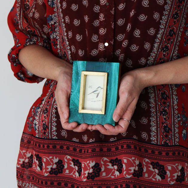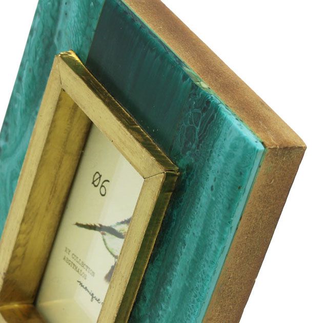 同じく「MONIQUE CHARTLAND(モニークチャートランド)」の「YAMUNA」は、エメラルドグリーンのグラデーションが美しいフォトフレームです。レジンを使った手作りならではの、着色のムラや歪みがアンティーク感を引き出していますよね。