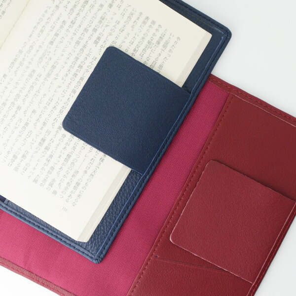 ブックカバーの内側には同素材のブックマーカーが付いていて、本のページを傷付けることなくサッとマーキングすることが可能。また、ブックマーカーの下にあるカードポケットには、定期券やよく使うカード類を入れておけますよ。