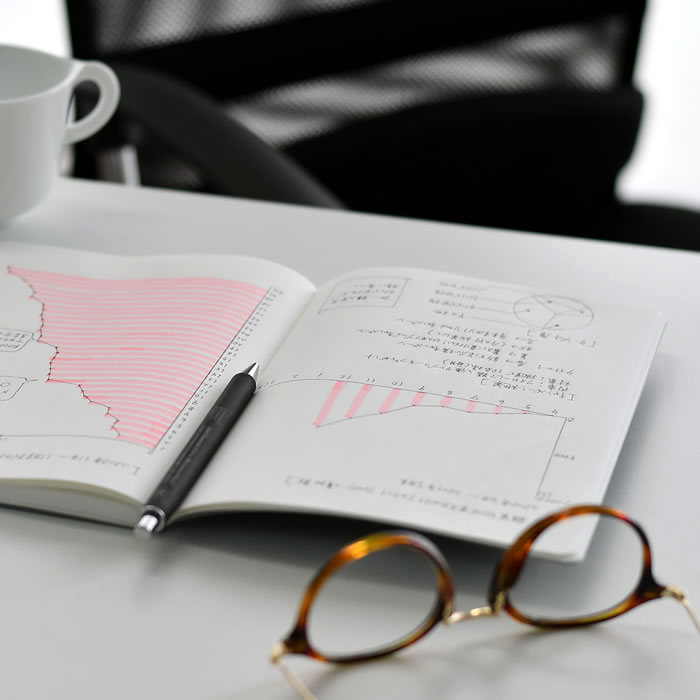 ページは5mmのドット方眼。グレー色のドットだから、文字やイラスト、図表の邪魔になりません。それでいて綺麗に書き込む手助けをしてくれるところは、まさに“縁の下の力持ち”。タイムスケジュールや実行したタスクをまとめたら、自分の成長や反省点が見えてきますよ。