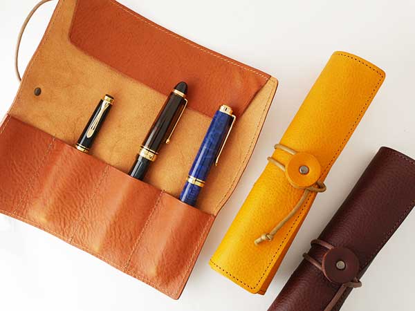 かぎ針とペンを一緒に収納するのにおすすめなのが、こちらの「ロールペンケース」です。生地には天然のヌメ革であるミネルバボックスを使用しており、柔らかで上質な質感が楽しめます。