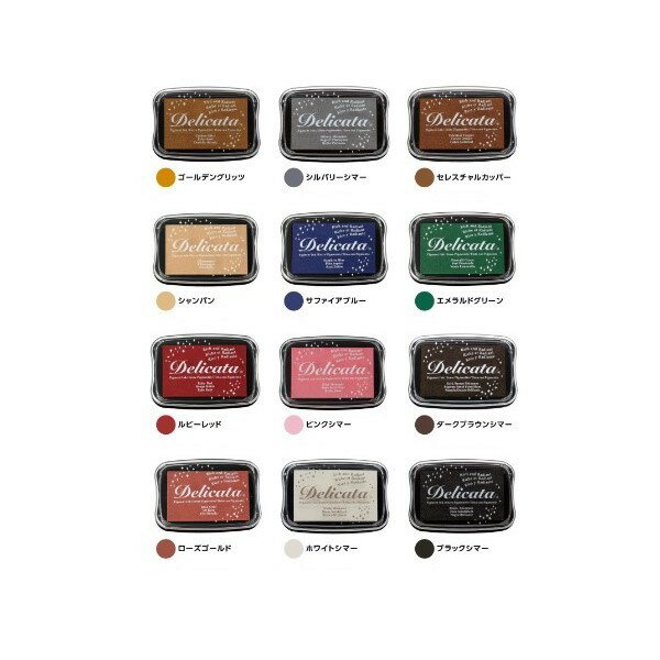 「ツキネコ」の「Delicata(デリカータ)」は、クッキリとした鮮明な発色が特徴のスタンプ台。ガーランドやインテリアグッズを作る際など、ハンドメイドを楽しむシーンにおすすめですよ。ゴールデングリッツやシルバリーシマーといった、キラキラしたカラーバリエーションに心が躍ります。
