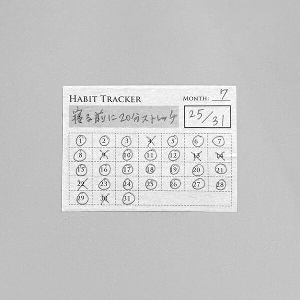 右上にはどれだけタスク消化できたかの結果を記入できる欄があるので、習慣づけのやり方の見直しにも役立つでしょう。手帳やノートに貼り付けておけば、複数の習慣づけもまとめて管理できますよ。