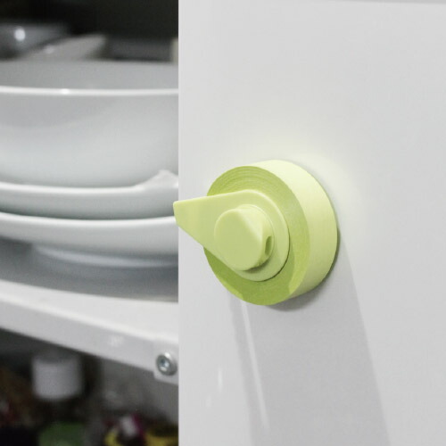 ころんとした丸いフォルムと明るいパステルカラーは、まるでマカロンのような可愛らしさがありますね。本体には磁石が付いているので、使わないときはいつでも冷蔵庫やホワイトボードなどに貼り付けておけますよ。